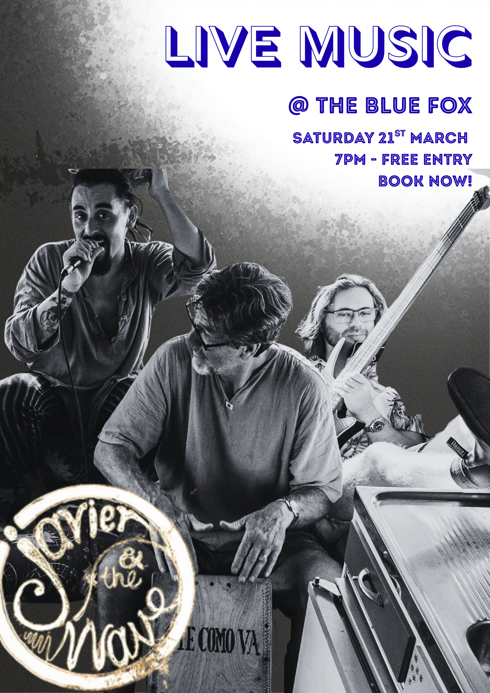 Join us on Saturday 21st March for an evening of free live music at The Blue Fox in the courtyard! We’re excited to welcome Javier and the Wave, bringing their feel-good vibes and energetic sound for a great atmosphere to kick back and enjoy. Grab a drink, gather your friends, and soak up the music — bookings recommended to secure the best spot.